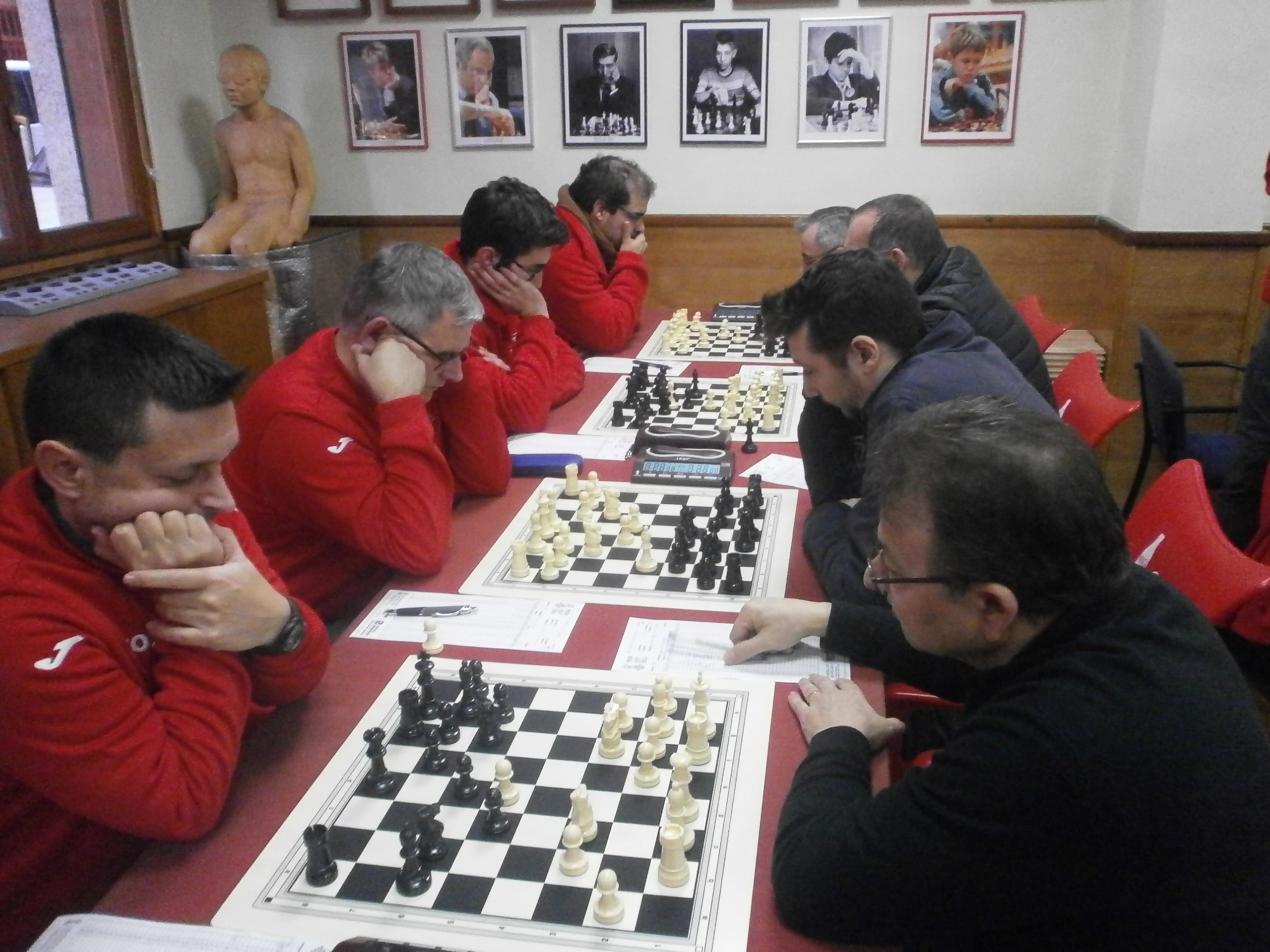 L’encontre està igualat, perquè Noelia va molt mal i Nodar també, un poc més de temps i serà segur que empatem l’encontre. Queda David, Santi i Paco ( a este no cal ni mirar-lo, perquè segur que farà taules) per definir el resultat final. David comença a liar-la, Santi va millor però no acaba de saber com, el rival també està correctament situat i té les seues opcions, i com sol ser normal en estes situacions, empat, ningú sap com guanyar ( si es que hi havia alguna forma) i deixa ara el marcador en un empat a 3.